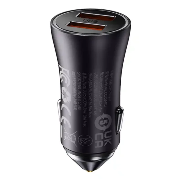 Baseus car charger allows you to quickly charge up to 2 devices at the same time. Its total output power reaches 60W. The device is compatible with 12-24V vehicles and provides safety for use. It is equipped with 2 USB ports. It is also distinguished by an extremely solid yet elegant design.