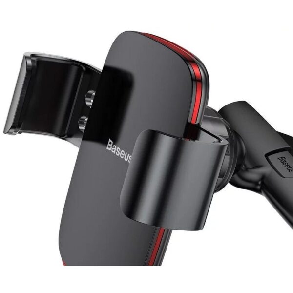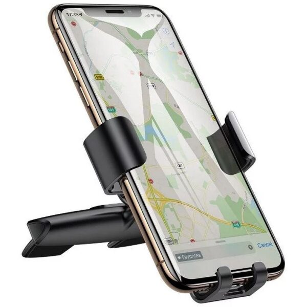 Gravitational car holder, ensuring stable and safe mounting of the phone. The holder's elegant and modern design fits perfectly with any car's interior. Works with devices with a width of 50 to 92 mm.