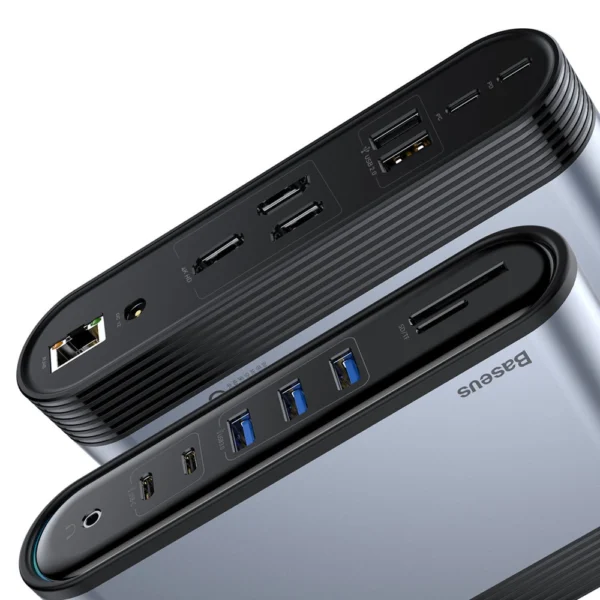 The multifunctional HUB by Baseus will be perfect for operating multiple devices at home and in the office. The device was created in response to the expectations of modern users who want to freely use their electronic devices and connect them with each other. The station is equipped with an SD and Micro SD card reader, network card, additional USB and USB Type C ports, 2x HDMI, 2x DisplayPort, which allows you to connect up to 4 additional monitors to your computer! It has 16 entrances in total. Work and entertainment are now on a much higher level than ever before.