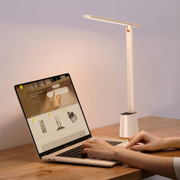 The Baseus lamp features auto-adjustable brightness. The practical design makes the lamp illuminate more space, and the warm color is pleasant to the eye. Thus, by its light you can read books or work comfortably.