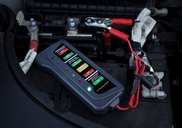 Battery and alternator tester, with crocodile clips, 12V