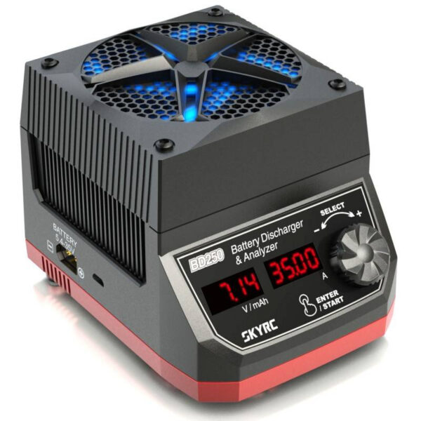 SkyRC BD250 allows you to test batteries of any type with 5.4 V up to 35 V. The device has a built-in fan, which is part of an advanced cooling system, ensuring optimal operation of the device, even when discharged at full power.