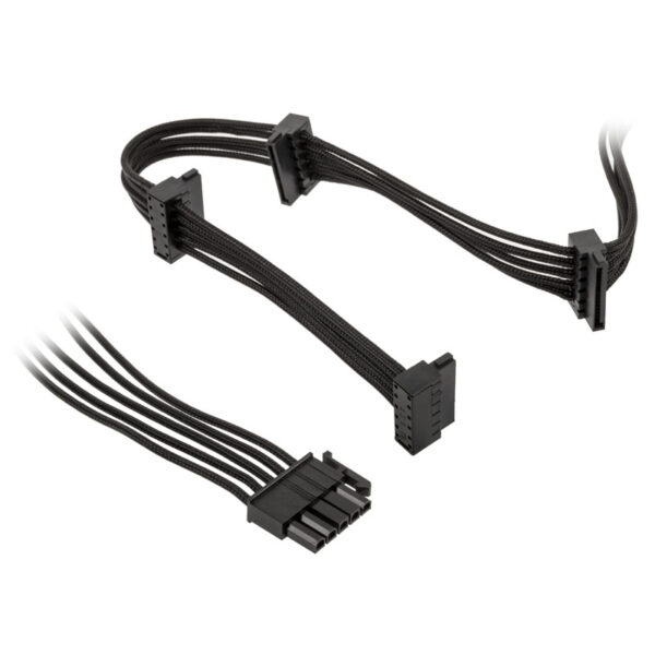 The 4x S-ATA power cable for modular be quiet! power supplies offers maximum comfort and flexibility. Covered with individual sleeves in opaque black they meet even highest demands. For all who want to give their PC the finishing touch.