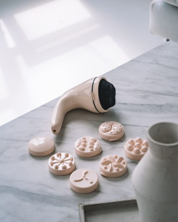 Rožės formos antgalis – skirtas šlaunims ir sėdmenims, gerina odos elastingumą ir kraujotaką.
