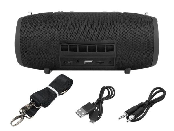 Prekės ženklas- Blow. Veikimo laikas įkrovus- 7 h. Įkrovos laikas- 6 h. Garso galia- 12 W. Bluetooth sąsaja- Taip. WiFi sąsaja- Ne. Laisvų rankų funkcija- Taip. Privaloma garantija- 24 mėn. Plotis- 220 mm. Gylis- 94.8 mm. Aukštis- 98.7 mm. Svoris- 750 g. Spalva- Juoda. Dažnių diapazonas- 100 – 20000Hz. Forma- Cilindro. Jungtys- 3.5 mm (AUX), Bluetooth, Micro SD, USB. Maksimalus veikimo nuotolis- 10 m. Radijo imtuvas- FM. Garantija juridiniams asmenims- 12 mėn. Papildoma informacija- Pridedamas diržas.