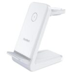 Komplektą sudaro magnetinis bevielis greitasis įkroviklis ir specialiai jam pritaikytas stovas.