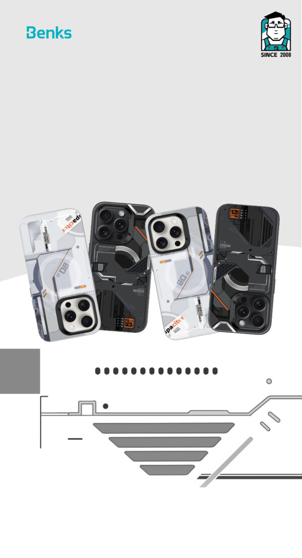 Benks Dėklas Magnetic Mecha Series skirtas Apple iPhone 14 Pro baltos spalvos