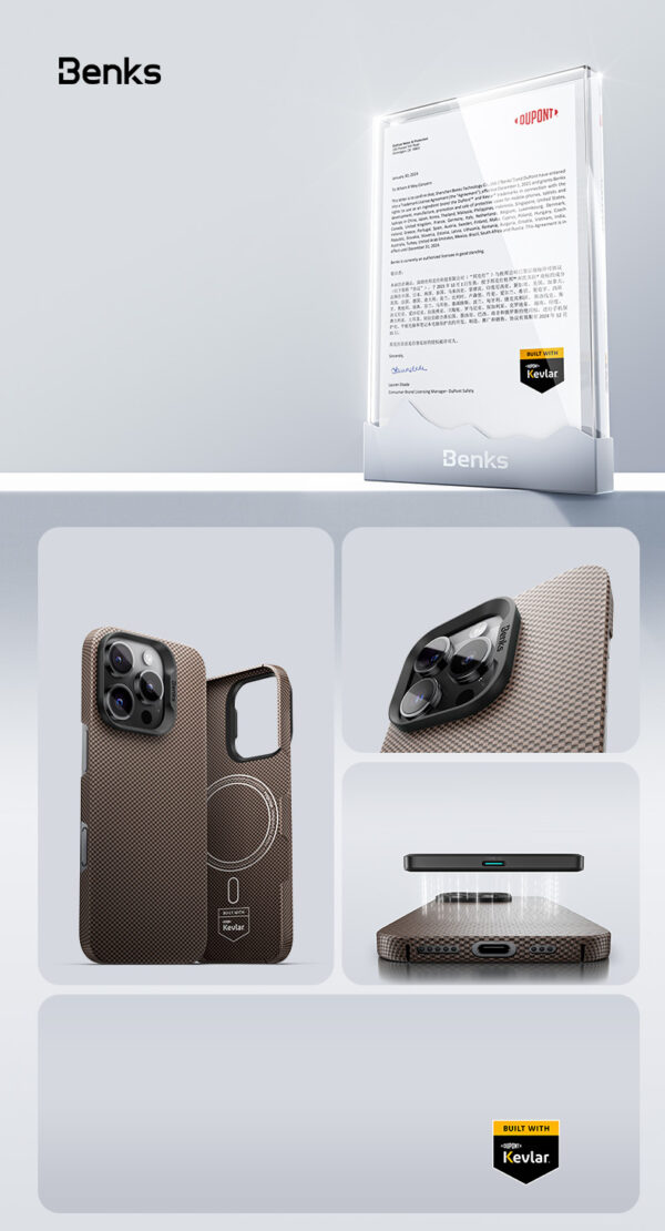 Benks Etui Magnetic Armor Tint Kevlar 1000D (SA66) skirtas Apple iPhone 16 Pro Max geltonos spalvos