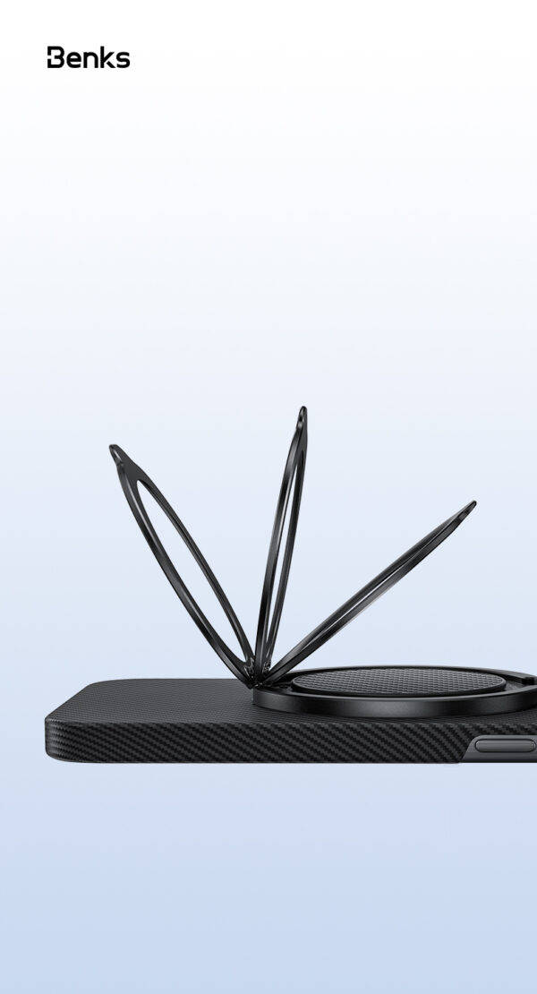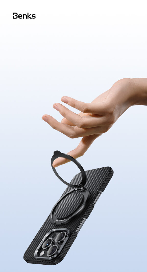 Uchwyt do telefonu Benks został wykonany z eleganckiego metalowego pierścienia, tworząc teksturę antypoślizgową dla wyjątkowego chwytu i komfortu. Niezawodny, lekki i stylowy – idealny dodatek do Twojego urządzenia.