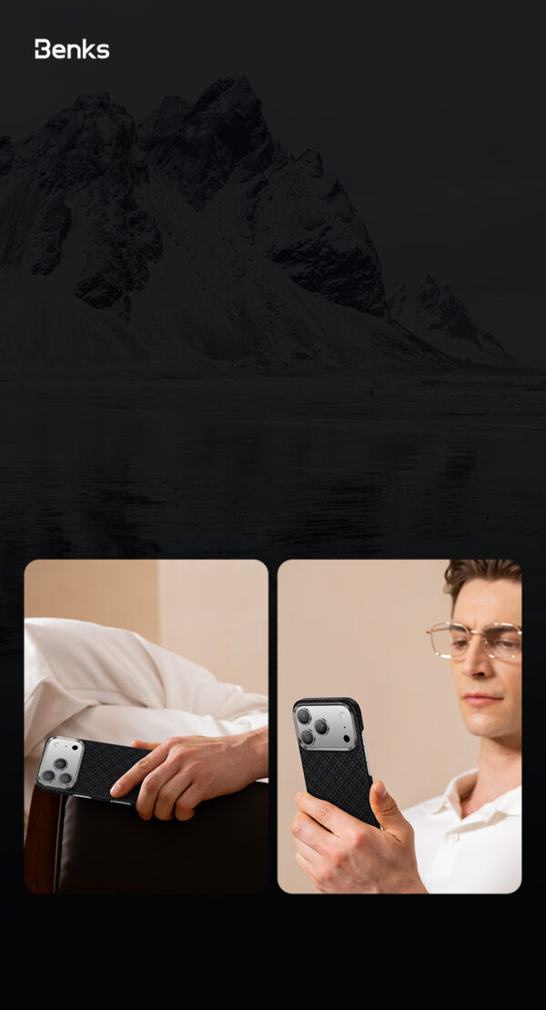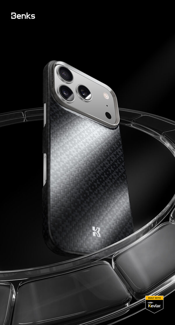 Benks Magnetic Armor Air Armor Grid Kevlar Case Metal Frame 600D (B067) skirtas Apple iPhone 17 juodos spalvos