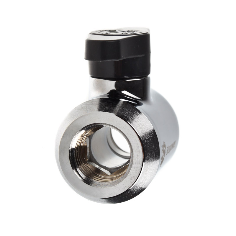 Bitspower Ball Valve 2x Female G1/4 Inch, Black Handle – Shiny Silver
