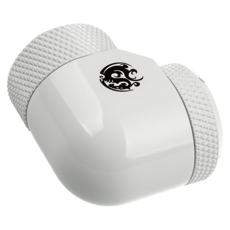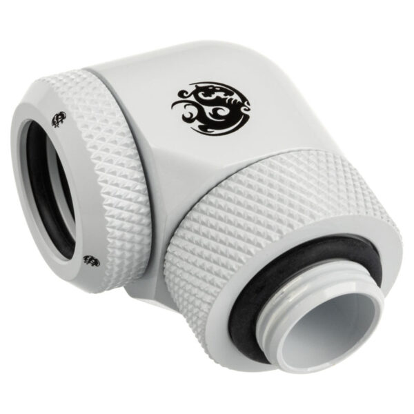 Bitspower Adapter 90 Degree G1/4 Inch Female Thread to 14mm OD Hard Tube – Rotatable, White