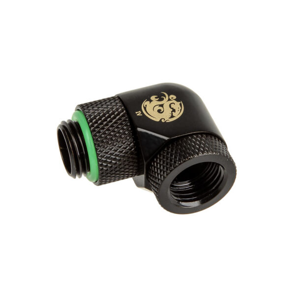 Bitspower Adapter 90 degrees G1/4 inch male to G1/4 inch female – swivel on both sides, matte black