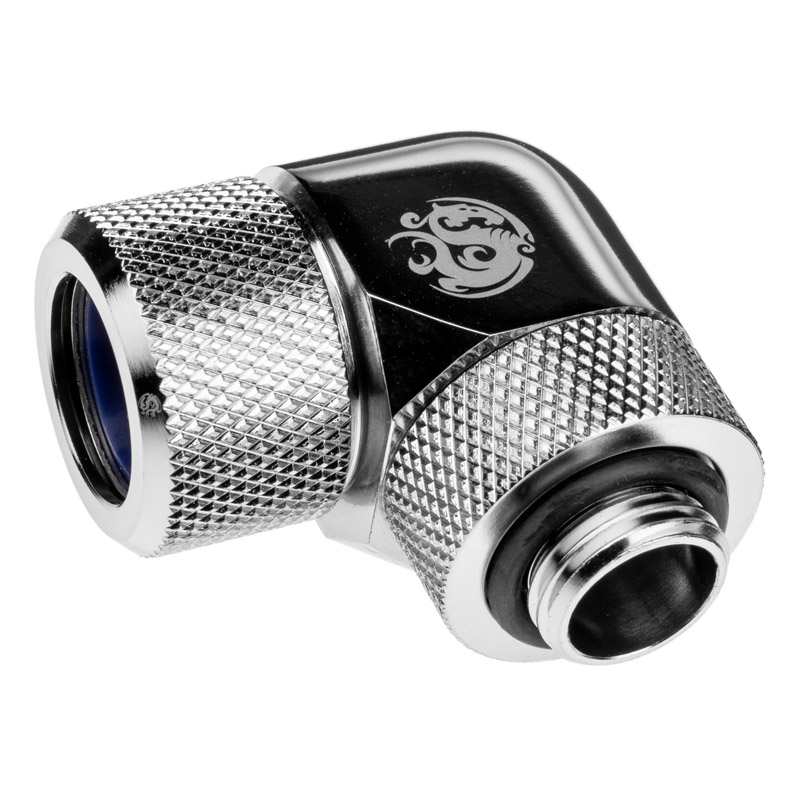 Bitspower Advanced Adapter 90 Degree G1/4 Inch Male to 14mm OD Hardtube – Rotatable, Silver