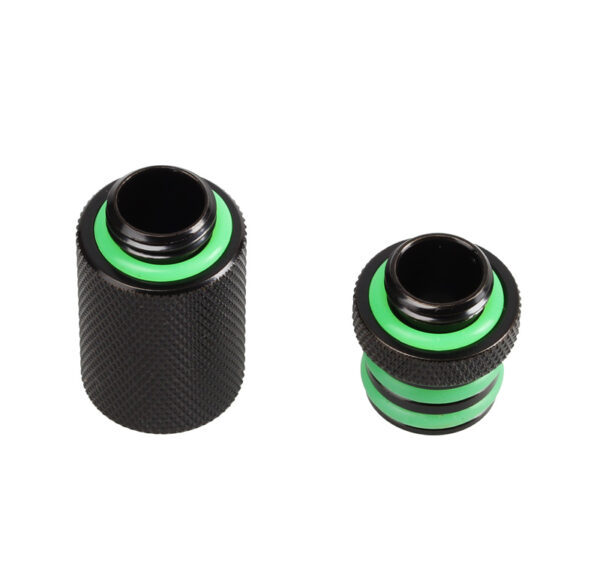 Hierbei handelt es sich um ein zweiteiliges, mattschwarzes Direct-Connect-Set in einer extra langen Version für besseres Handling. Dieses bietet die Möglichkeit, eine Öffnung des Kreislaufs vorzunehmen, um beispielsweise Wasser zuzuführen oder einzelne Komponenten auszutauschen oder zwecks Transport extern aufzubewahren. Zwei Dichtungsringe verhindern hierbei ein Auslaufen von Flüssigkeit. Auf beiden Seiten stehen G1/4-Zoll-Außengewinde zur Verfügung, womit eine hohe Kompatibilität zu einer Vielzahl von Anschlüssen besteht.