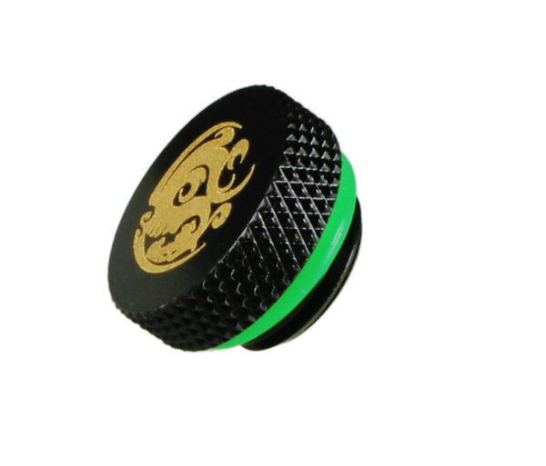 Hierbei handelt es sich um einen matt-schwarzen Verschlussstopfen mit G1/4 Zoll Außengewinde, welcher in ein G1/4 Zoll Innengewinde geschraubt wird. Damit können temporär oder dauerhaft nicht benötigte Öffnungen verschlossen werden.