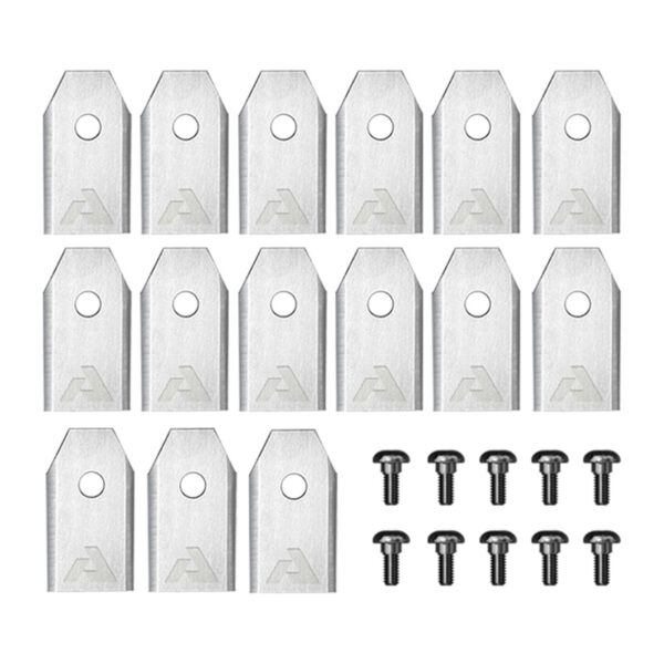 The Blade Set for Anthbot Genie 1000/3000 mowing robots includes 15 double-sided titanium-coated stainless steel blades and 10 mounting screws for long-lasting durability and precise cutting. It’s a practical set that allows you to quickly replace worn parts and keep your machine in optimal condition.