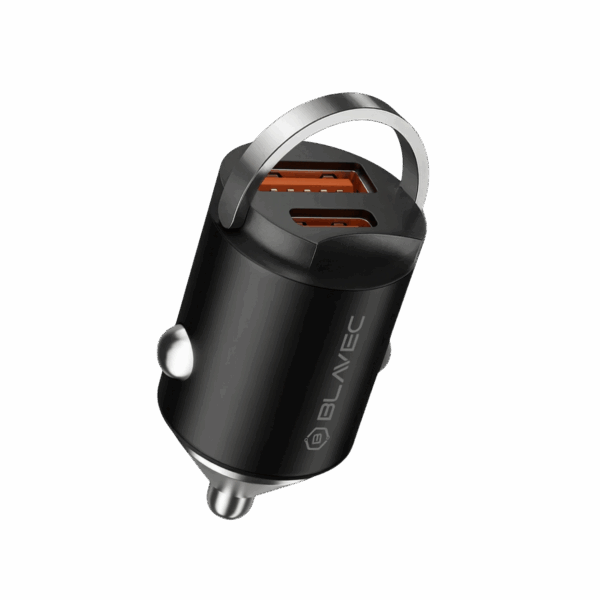 Blavec Automobilinis įkroviklis BS-02B-C Aero – USB + Type C – QC 3.0 18W PD 30W su Type C į Type C kabeliu (CCBS02BCA-UCB) juodos spalvos