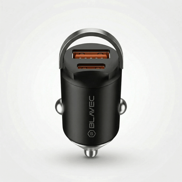 A modern car charger made of high-quality aluminum alloy ensures durability and excellent heat dissipation. Equipped with USB-C and USB-A ports and support for fast charging technologies, it allows you to charge two devices simultaneously quickly and safely.