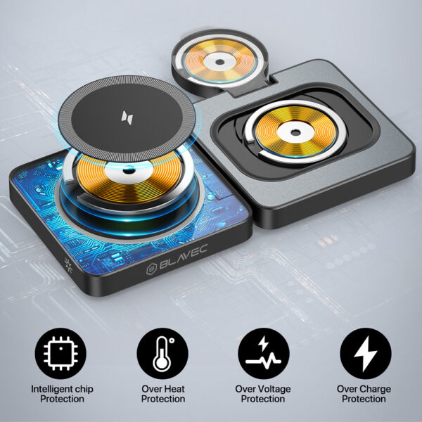 Blavec BQI-04 Qi 15W Magnetic MagSafe | Foldable 3-in-1 UniCharge Charger for Phone, AirPods & Apple Watch