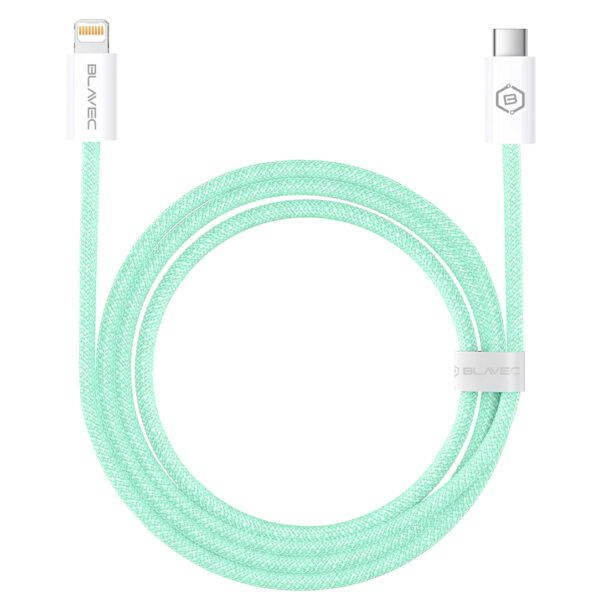 Blavec kabelis Candy braided – Type C į Lightning – PD 20W 2,4A 2 metrai (CCA-CL24GN20) žalios spalvos