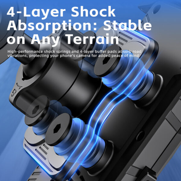 - Spring-based shock absorbers and anti-slip finishing enhance phone safety while riding.