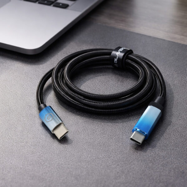 Blavec Velox Braided Cable – USB-C to USB-C – PD 100W 5A with LED Display 1.2 m Apple CarPlay / Android Auto Black–Blue