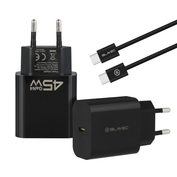 Blavec laidinis įkroviklis BC-7 GaN4 – Typ C – PD QC 45W 3A su kabeliu Typ C na Typ C (TCBC7G4-CB453A+CC) juodos spalvos