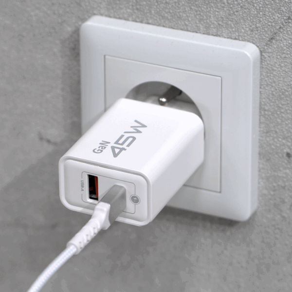 Zapewnia moc 45W, co umożliwia szybkie ładowanie urządzeń, nawet tych o większym zapotrzebowaniu energetycznym, w krótkim czasie.