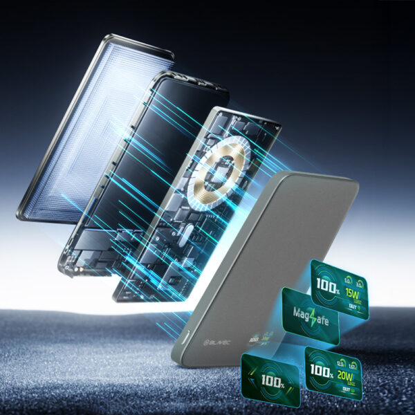 Blavec Power Bank 5000mAh BJ04 ULTRA Slim 7.8mm – Type C – 22.5W Magnetic Wireless MagSafe 3-in-1