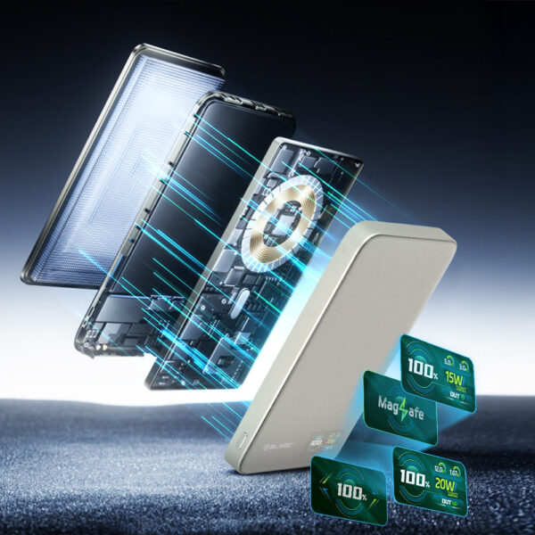 Blavec Power Bank 5000mAh BJ04 ULTRA Slim 7.8mm – Type C – 22.5W Magnetic Wireless MagSafe 3-in-1