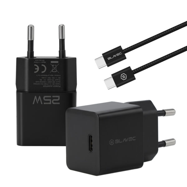 Blavec Wall charger BC-10 – Type C – PD 25W 3A with Type C to Type C cable (TCBC10-CB253A) juodos spalvos