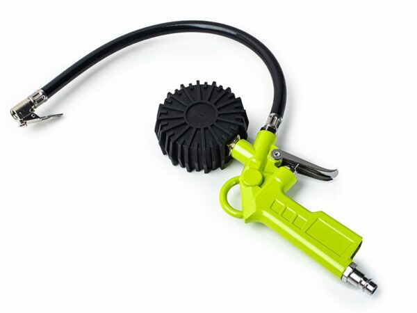A gun with a pressure gauge for inflating wheels allows for routine pressure control. It has a valve that allows excess air to be released. The DG-10 air blow gun is designed for cleaning devices and surfaces using compressed air. A spiral hose with EURO quick connectors increases the working range and allows you to quickly connect the elements of the set.