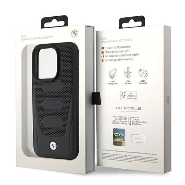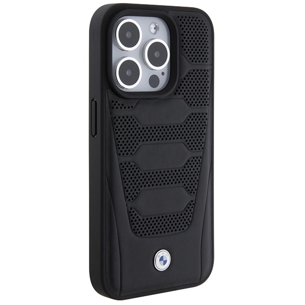 BMW BMHCP15X22RPSK Apple iPhone 15 Pro Max 6.7″ dėklas telefonui juodos spalvos Leather Seats Pattern