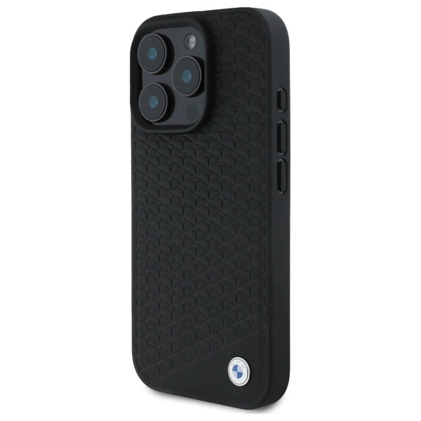 BMW BMHMP16L23RDDK Apple iPhone 16 Pro 6.3" dėklas telefonui juodos spalvos Sign Leather Diamond Metal Logo MagSafe