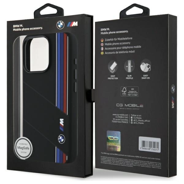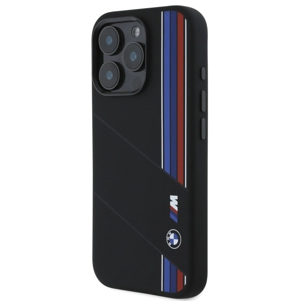 BMW BMHMP16L23SCUK Apple iPhone 16 Pro 6.3" dėklas telefonui juodos spalvos Silikoninis Cut Tricolor Lines MagSafe