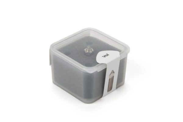 Copper and Hardened Vanadium Steel nozzle for high flow applications with abrasive materials. Increase the Max Volumetric Flow of your Volcano style heat block by 50%. Nozzle is supplied with Nickel Coating (grey color).