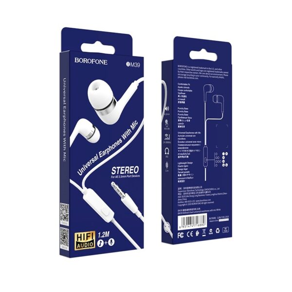 Borofone Słuchawki BM39 Refined Chant – białe to wysokiej jakości słuchawki przewodowe, które łączą precyzyjne brzmienie z wygodą użytkowania. Wykonane z trwałych materiałów, zapewniają komfort noszenia i stabilne połączenie audio przez złącze 3,5 mm.