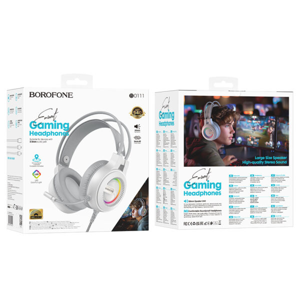 Borofone Ausinės su lankeliu ant galvos BO111 Eminent žaidimams su mikrofonu baltos spalvos