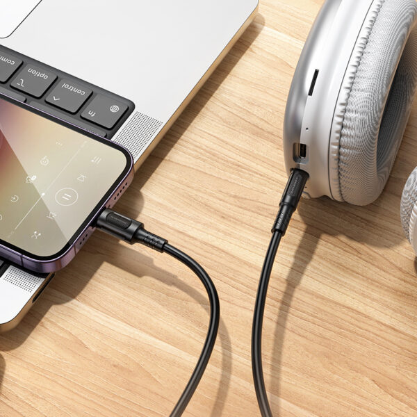 Borofone AUX Cable BL25A Nice – Lightning to 3.5mm jack – 1 meter – black is a convenient audio cable designed to connect Apple devices to speakers, car stereos, or headphones with a 3.5mm input.