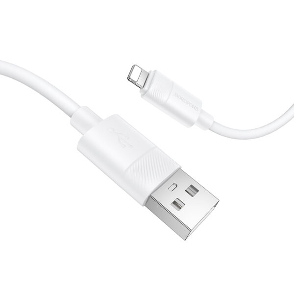Borofone BX123 Leya Cable – USB to Lightning – 12 W – 2.4 A – 1 m – white is a durable and flexible cable designed for charging Apple devices and data synchronization.