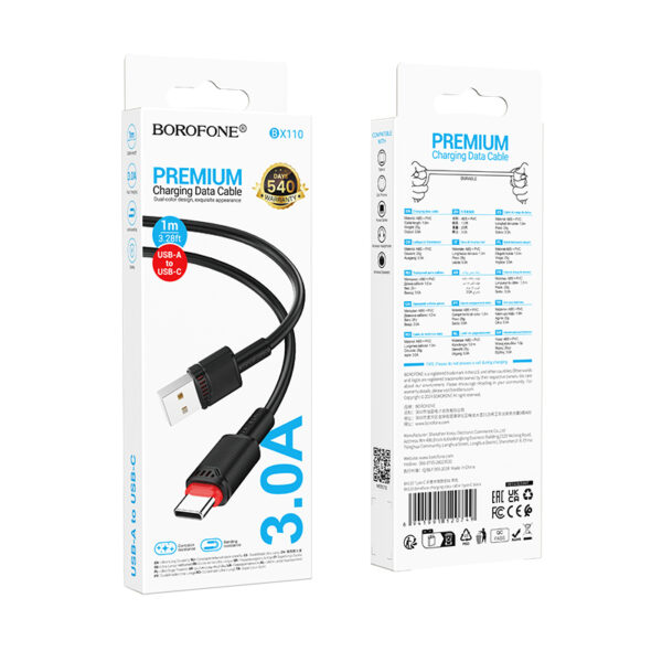 Borofone kabelis BX110 Beneficio – USB į Typ C – 3A 1 metras juodos spalvos