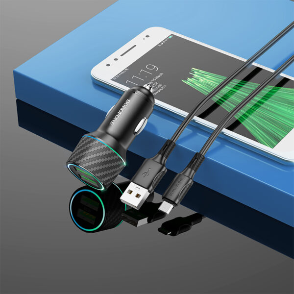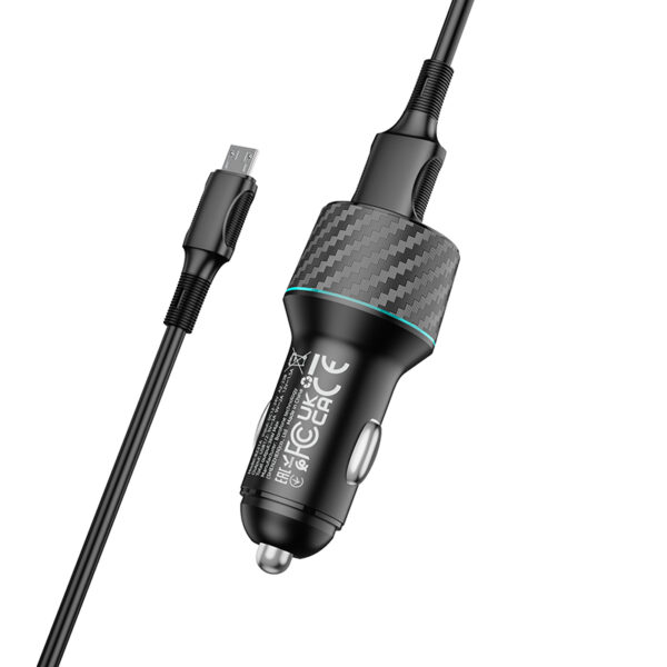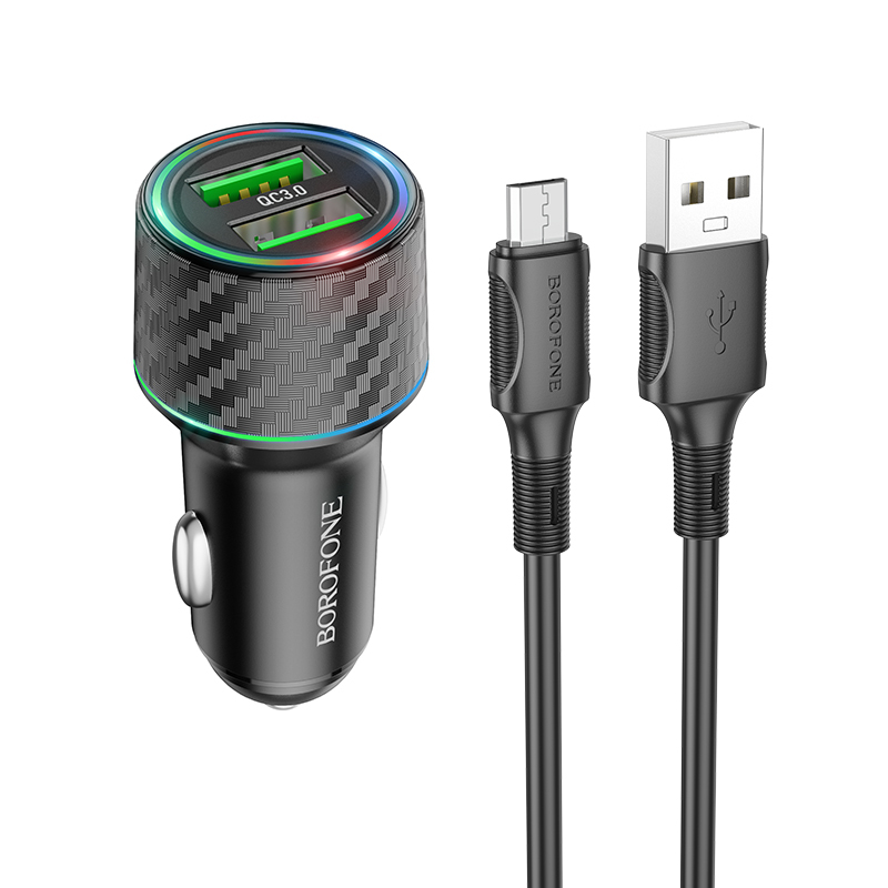 Borofone laidinis įkroviklis BZ21A Brilliant – 2xUSB – QC 3.0 36W su kabeliu USB į Micro USB juodos spalvos