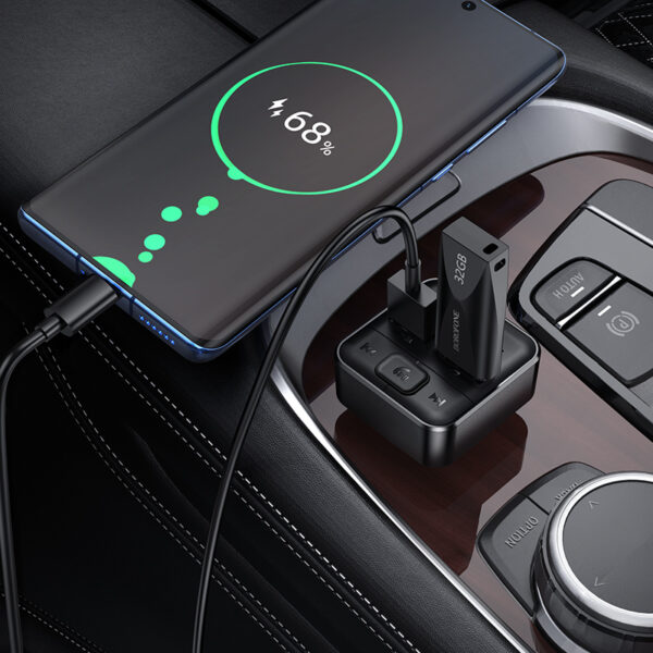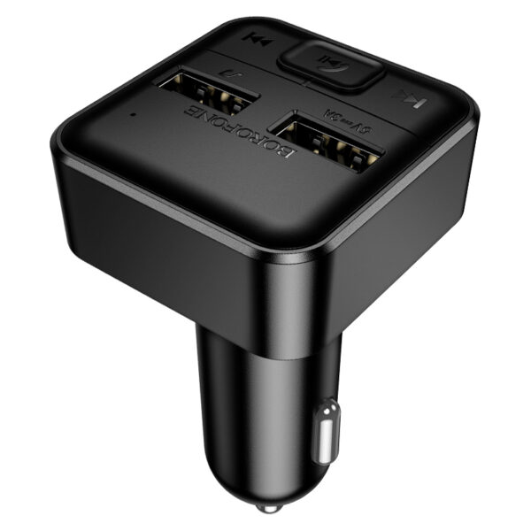 Borofone FM Transmitter BC63 Selecto – MP3, Bluetooth – 2xUSB – black is a practical and modern in-car device designed for music playback and smartphone charging.