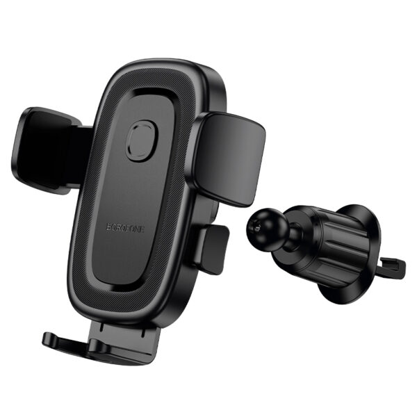 Borofone Uchwyt Samochodowy BH131 Follower grawitacyjny na kratkę wentylacyjną – czarny to innowacyjny uchwyt, który automatycznie dopasowuje ramiona do szerokości telefonu, zapewniając stabilne mocowanie podczas jazdy. Wykonany z odpornego ABS-u i antypoślizgowego silikonu, z teksturowaną powierzchnią, łączy wytrzymałość z nowoczesnym designem.