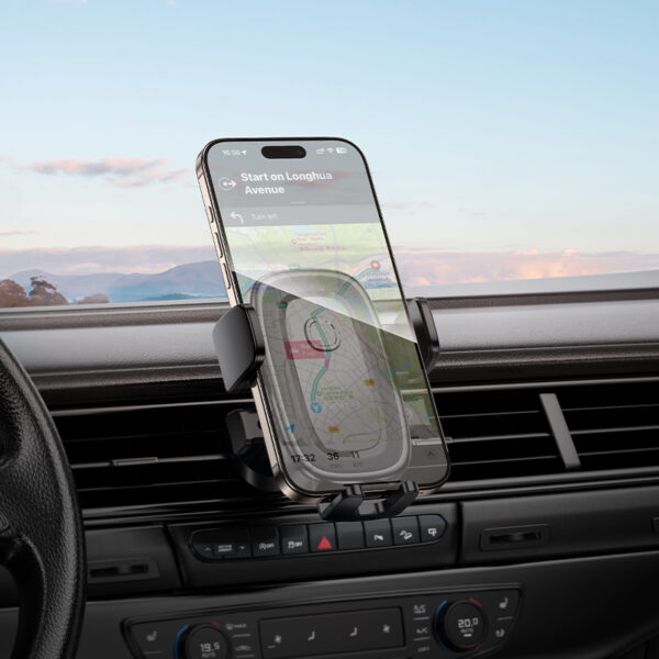 Model BH131 Follower montuje się bezpośrednio na wylocie powietrza w samochodzie, a mechanizm grawitacyjny pewnie trzyma urządzenia od 4,5″ do 7,0″ (zaciski 60–90 mm). Idealny do nawigacji i rozmów hands-free.