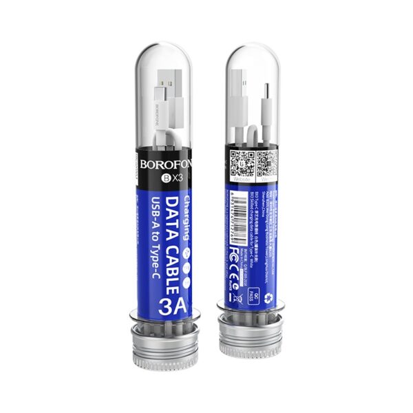 Borofone – USB-A – USB-C cable for data transmition and charging, 1 m baltos spalvos