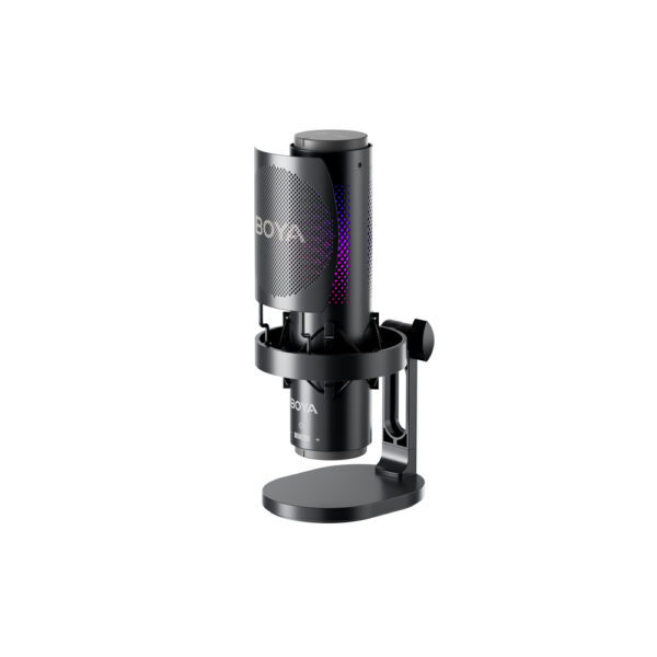 The BOYA K9 is a USB microphone designed for high-quality recordings in home studios, streaming, and podcasts. It offers 48 kHz audio recording in 16-bit or 24-bit, allowing for a more detailed and natural sound. Three polar patterns allow for easy adjustment of sound pickup to the specific situation. Built-in noise reduction and real-time monitoring enhance recording control. RGB backlighting and gain control complete the set's functionality. This solution streamlines recording and provides greater control over the sound.