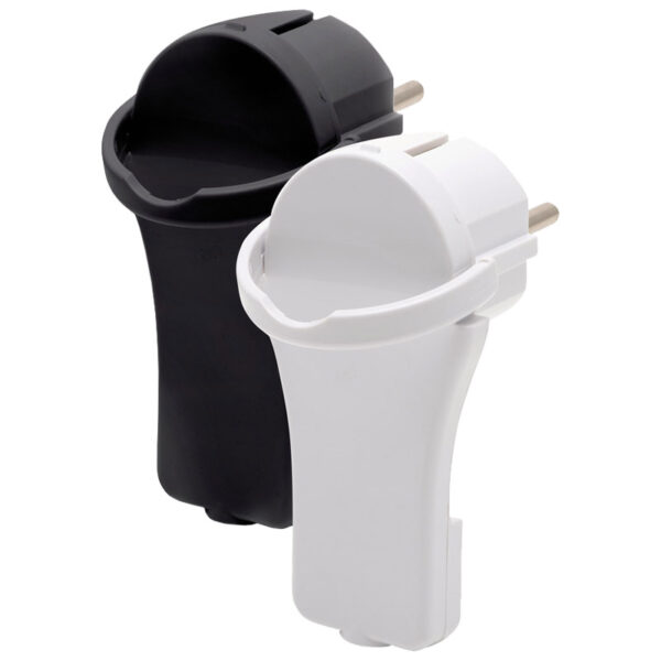 Plastic extension cable, with a cable length of 2 m, innovative earthed angled plug, earthed socket, plug system DE (plug type C), for indoor use
