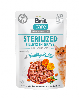 Brit Care Cat Sterilized Fillets in Gravy Healthy Rabbit konservai su triušiena sterilizuotoms katėms – 85 g
